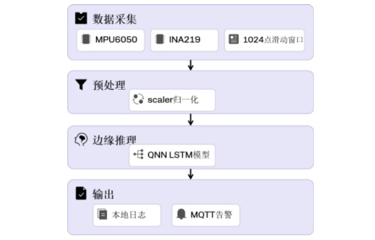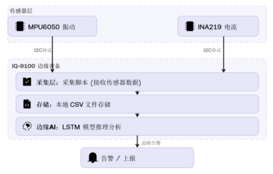 在上一篇文章中,我们完成了振动与电流传感器的硬件接入与数据采集,实现了从传感器到CSV文件的完整数据通道。本文将进一步介绍如何利用采集到的数据(或公开数据集)训练LSTM故障分类模型,并将其部署到高通跃龙IQ-9100边缘设备上,完成“采集 → 推理 → 告警”的闭环。