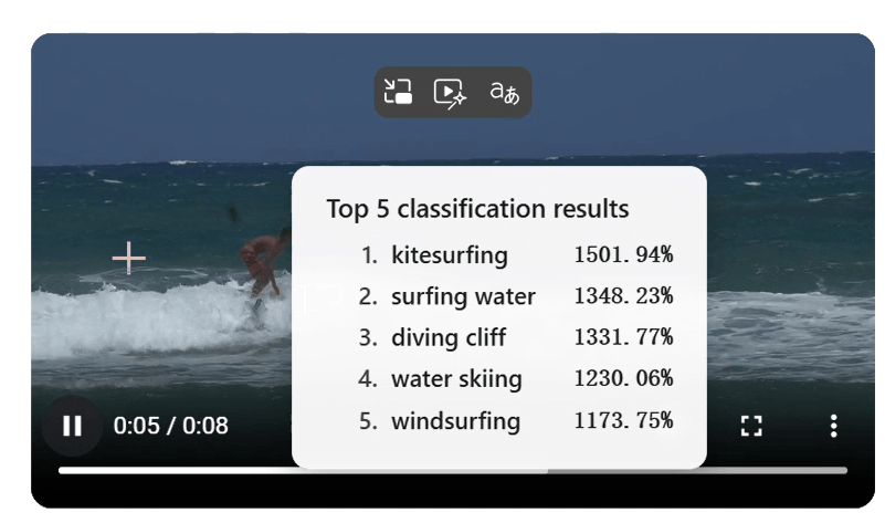 3. 在网页上上传视频,点击视频画面,对当前视频帧中的人体动作进行分类。