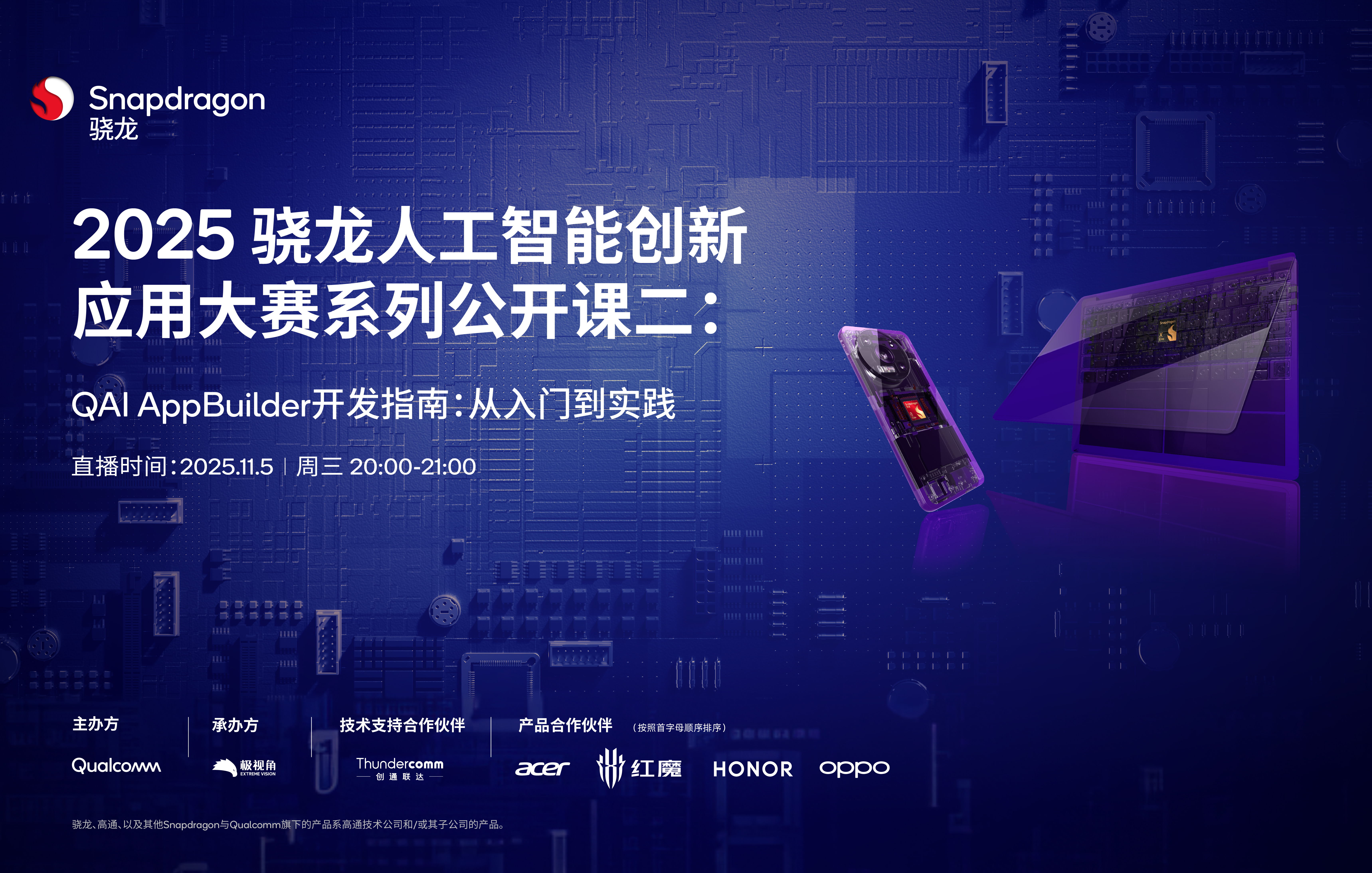 Qualcomm 开发者专区是 Qualcomm 联合CSDN 共同打造的面向中国开发者的技术专区。致力于通过提供全球最新资讯和最多元的技术资源及支持,为开发者们打造全面一流的开发环境。本专区将以嵌入式、物联网、游戏开发、Qualcomm® 骁龙™处理器的软件优化等技术为核心,打造全面的开发者技术服务社区,为下一代高性能体验和设计带来更多的想法和灵感。